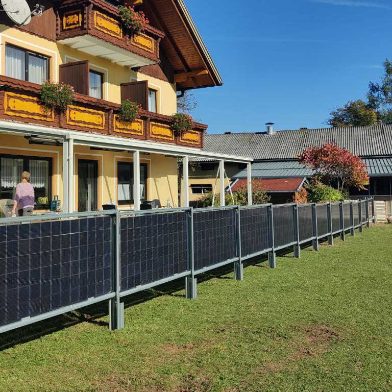 Photovoltaik-Zäune sind unverzichtbar für private, gewerbliche und industrielle Grundstücke sowie für landwirtschaftliche Betriebe mit Viehhaltung. Nutzen Sie daher die Möglichkeiten bifazialer Glas-Photovoltaikmodule in Kombination mit unserem Zaunsystem. So wird Ihr Zaun zum Stromerzeuger!