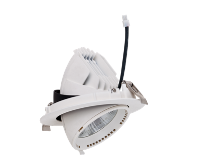 Ledonik Gimbal Einbaustrahler - kardanischer LED Einbaustrahler bis zu 4950 Lumen. Mit der kardanischen Aufhängung kann man die Einbautiefe auf max. 150 - 160 mm mittels zwei gegeneinander schwenkbaren Reifen reduzieren und erleichtert hier eine flexible wie auch eine präzise Leuchtenausrichtung. Auch kleine Schwenkbewegungen wirken sich stark auf die Position des Lichtkegels aus. Diese Konstruktion erlaubt eine 360° Drehung horizontal.
